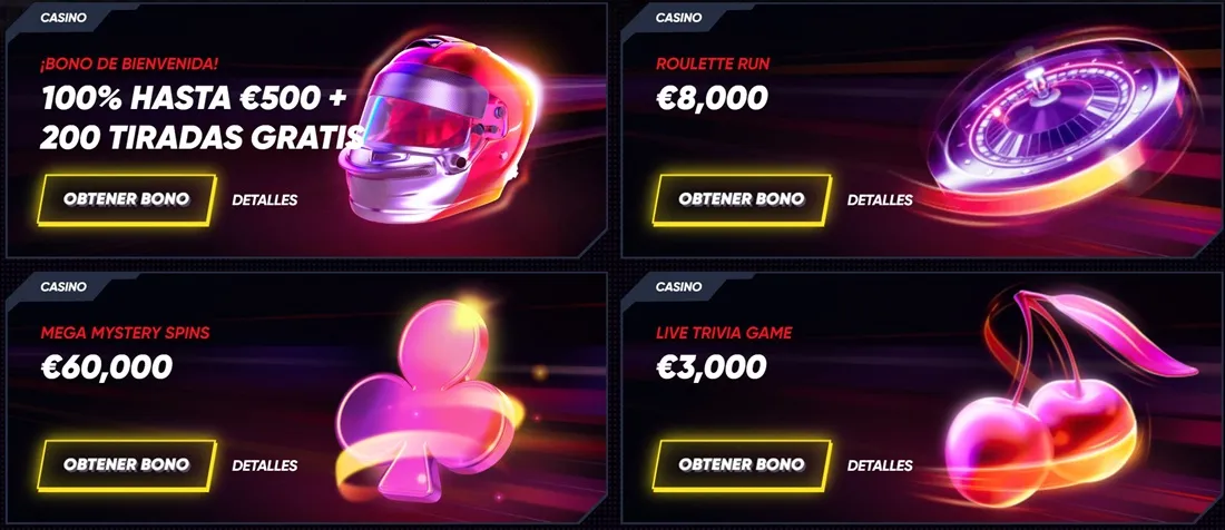| Rasca y gana, Bingo, Blackjack, Bacará, Dados, Keno y juegos instantáneos | Descubrirás múltiples categorías divertidas. |